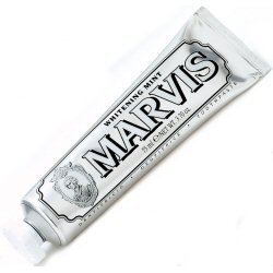Marvis Whitening Mint Toothpaste (75ml): Marvis is a classic toothpaste from Italy created using traditional methods to guarantee a rich, creamy paste and turn the simple act of teeth brushing into a daily pleasure of discovery and taste. This specially formulated whitening toothpaste contains ingredients that gently but effectively work to reduce discolouration of the teeth. Marvis whitening toothpaste is flavoured with cool mint that leaves you with a lasting taste and freshness. The formula contains Fluoride to help prevent tooth decay, fight tartar and plaque and keeps breath fresh all day long.