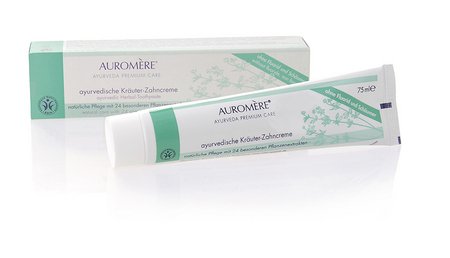 Ayurvedic herbal toothpase with 24 special plant extracts without flouride, non foaming. Ayurvedic specialists have long appreciated the effectiveness of herbs in natural dental hygiene. Auromere Herbal Toothpaste gently cleans your teeth, calms and strengthens your gums.