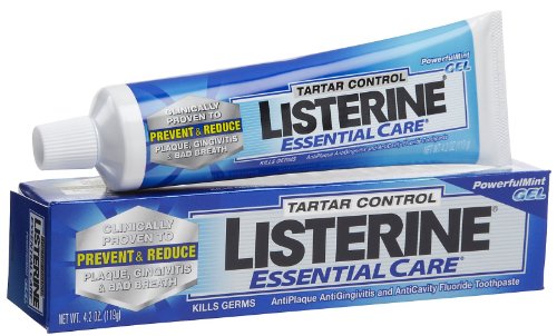 INDICATIONS: Listerine Essential Care Tartar Control Toothpaste Clinically proven to prevent & reduce plaque, gingivitis & bad breath. Kills germs. Antiplaque, antigingivitis and anticavity fluoride toothpaste.