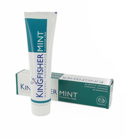 The Nr. 1 Natural Toothpaste in England! Kingfisher Natural Toothpaste efficiently removes dental plaque and is made of 100% natural ingredients. Regular use of Kingfisher Toothpaste protects against cavities and strengthens your teeth and gums. No artificial sweeteners, flavourings, colourings or preservatives. Flouride-free. Available in 2 flavours.